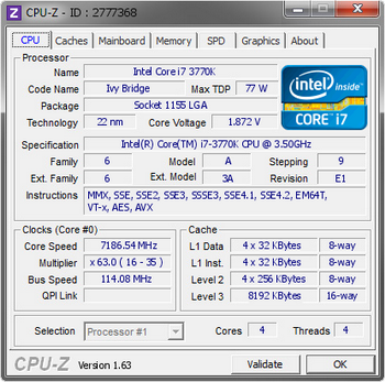 Australian overclockers managed to set a new record for overclocking Core i7-3770K (Ivy Bridge), corresponding to the frequency of 7186 MHz . By the way, this record is only a couple of megahertz superior to Smoke achievement .