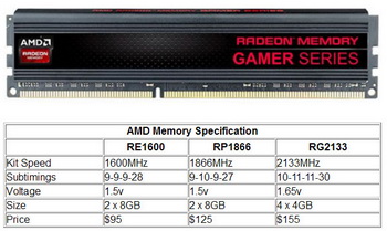 Another unique feature of the modules AMD Radeon RG2133 is simultaneous support of two profiles - Profile Intel XMP and AMD corporate profile - AMP ( AMD Memory Profile ). New product already sold in the online store Newegg.com . The price - $ 155 per set of four 4 GB modules DDR3. Note the CL value for such at frequency - 2133 MHz - is quite good and is equal to 10 (full timing - 10-11-11-30). Related Products :