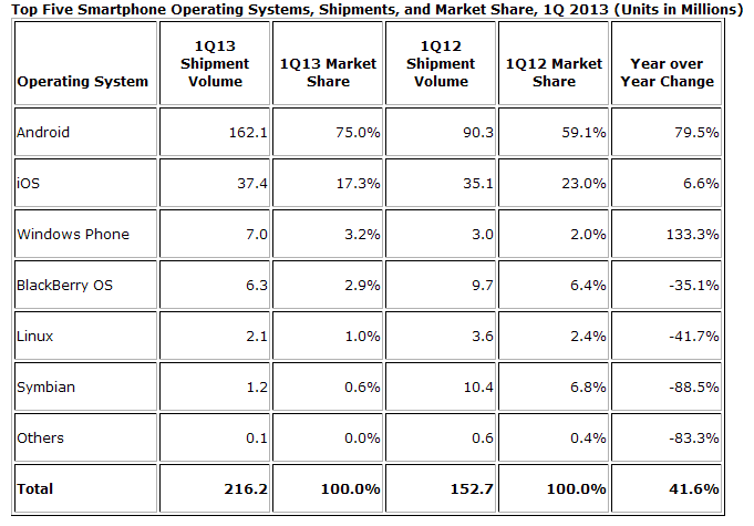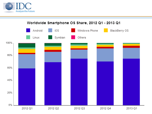 A few days ago about its vision of the smartphone market and the distribution of shares of mobile operating systems, reported Gartner company. Today, the same questions posed other analytical firm - International Data Corporation (IDC). However, in contrast to their colleagues, IDC estimated first quarter primarily from the point of view of change in the shares of the smartphone operating systems.