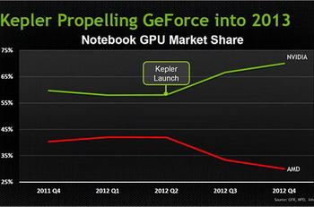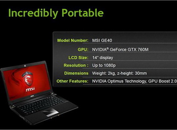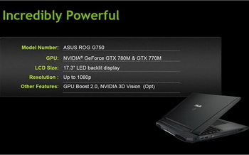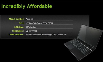 The GeForce GTX 780M is based on GK104 processor , and the models GTX 770M, GTX 765M and GTX 760M - on GK106. The high end model, we note repeats the fate of presented yesterday desktop graphics card GeForce GTX 770. It is almost identical to the solution GTX 680MX, using a slightly higher frequencies and slightly more aggressive automatic overclock. In all, GeForce GTX 780M can count 1536 stream processors clocked at 823 MHz. The upper limit of NVIDIA does not specify what might be at the mercy of laptops manufacturers. The decision GTX 770M has 960 stream processors, and a GTX 765M and GTX 760M - 768 cores CUDA. The frequencies are respectively 811 MHz, 850 MHz and 657 MHz. Memory Bus 256-bit (GTX 780M), 192-bit GTX 770M and 128-bit for younger processors.