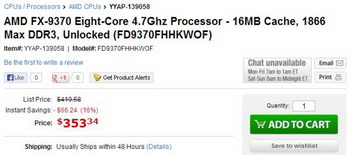 Colleagues once again detected processor FX-9370 in price a popular American magazine , where it can be purchased for only $ 353.