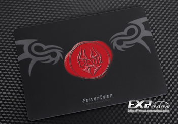 Devil HD 7870 equipped with a massive cooling system with radiator on base of four heatpipes, three fans, decorative metal casing, and even back reinforcing plate. Under the armor is hidden circuit board designed specifically for PowerColor Devil HD 7870 engineers.