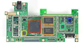 Motherboard device is compact enough and includes a processor Qualcomm APQ8064, four memory chips Elpida total of 2 GB, video transmitter, controller wireless charging, wireless adapter, flash memory SK Hynix 16 GB, and a chip Qualcomm PM8921, the control power supply.