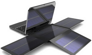 WeWi Telecommunications develop a laptop model that can make full charging from solar energy. There are solar panel with four petals, each is a little bit less than the 13-inch screen.