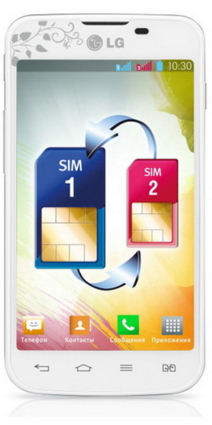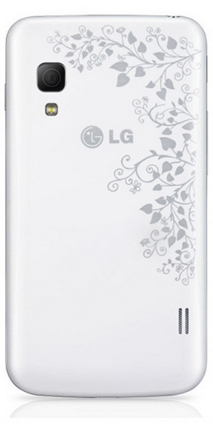 LG company has launched a version of its original lady budget Android-smartphone model Optimus L4 II Dual, which is a simplified version of Optimus L5 II Dual. The device has the following dimensions: 112,8 x 64,7 x 11,9 mm, characterized by smooth lines of the case and is available in white body with an elegant floral design on the front and rear panels.