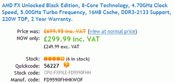 Some stores have already reduced the cost of CPU AMD FX-9590, although originally it was offered only in the finished computers. For example, a British store Aria PC offers this model for 299 pounds, which at the current rate is $ 468.