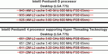 Several days ago , intel company sent out the notice, in which it was told about the removal periods of those a few representatives of netBurst architectures  , which are presented in the current  intel Price- list version . Thus, in 8th August 2007 will start the removal from of the following processors models  :