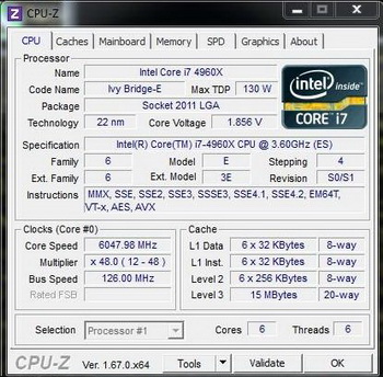 This result is 4697.82 points DX11 is a new world record Unigine Heaven. At the same time, South Korean enthusiast oc_windforce updated Ivy Bridge-E overclock record in the environment XTU - CPU Core i7-4960X under liquid nitrogen was overclocked to 6047 MHz with six active cores, but Hyper-Threading disabled . The test recruited 1891 XTU score.