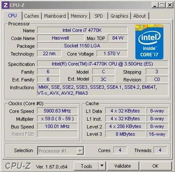 Processor Core i7-4770K overclocked to 5.9 GHz with four active cores with Hyper-Threading technology disabled , a single video card GeForce GTX Titan operated at frequencies 1700/7720 MHz.