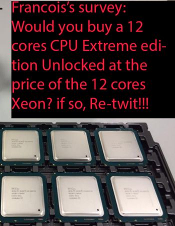 On Intel Twitter page (of a well-known engineer of the company) can be found some survey, which brings to the public an idea of 12-core processors with unlocked multiplier consumer class derived from models with appropriate Xeon characteristics .