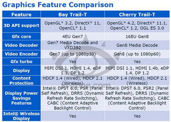 One of the most important news is the increase in the number of Cherry Trail graphics execution units ny four times - from four to sixteen pieces. In addition, It provides support DirectX 11.1, OpenGL 4.2, OpenCL 1.2 and OGL ES 3.0, as well as more modern codecs.