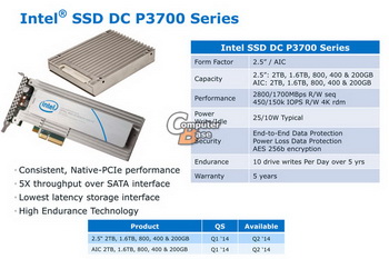 P3700 series, codenamed Fultondale continue to use abrasion-resistant 20-nm NAND flash HET MLC. Reading speed for this series SSD reaches 2.8 GB / s and write speed - 1.7 GB / s. Coupled with a maximum capacity at 2 TB - is a nice figure, but the price is at $ 4000.
