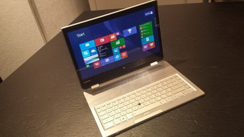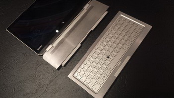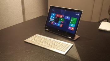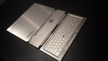 Toshiba at CES 2014 showed a prototype of transformer ,a rather unusual device. At first glance, it is a regular laptop, but its lower part is able to be divided into two parts, freeing the keyboard. The remaining one-third of the bottom portion can be used as a stand for the display, wherein the keyboard is interfaced with the computer via the wireless interface.