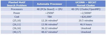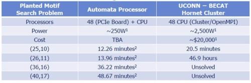 Finally, the company has shared some details about the processor machines. This architecture Micron introduced last fall as a solution that can quickly handle complex unstructured data. What fundamentally, Micron is really going to move away from the established paradigm and classical von Neumann architecture. Describing Automata Processor (AP) in their own words, a company spokesman called the development processor symbols, state machine and undetermined. Such "atypical" solution will solve such problems that modern processor architectures are not able to cope. For example, are theoretical calculations about the possibilities 48-processor AP-system compared with a conventional 48-processor cluster.