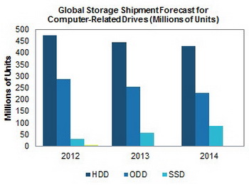 For 2013 were sold 253.5 million optical disc drives, which is 12% lower than in 2012. This year is predicted another decline - to 226 million units. Characteristically, sales of SSDs rose from 31.3 million to 57 million units, or 82%. This year's growth will continue, to 85.8 million units.