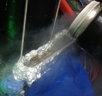 Tank memory cooling with liquid nitrogen was not only provided with inset aluminum foil, but also filled with coins, which were subsequently filled with liquid nitrogen.