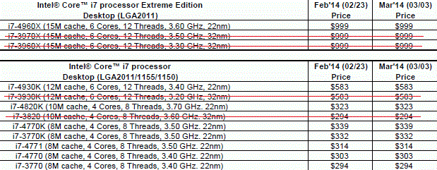 Until now, generations of processors Sandy Bridge-E and Ivy Bridge-E peacefully coexisted in list Intel price. However, this week, the manufacturer decided to warn customers that series processors Core i7-3xxx in LGA 2011 will be phased out by March 2015.