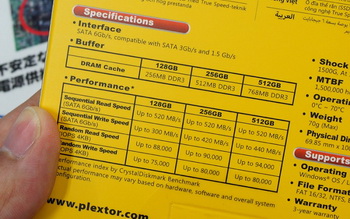 On the packaging of its products Plextor carefully places the information about the drives speed. Recall that they are based on the controllers server class Marvell 88SS9188 and memory chips Toggle NAND, which are made by Toshiba.