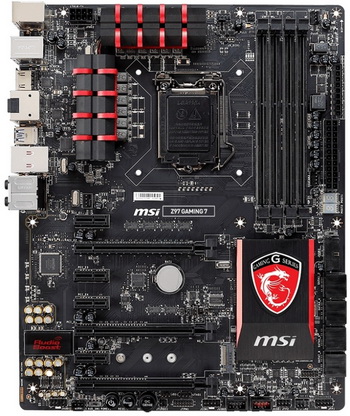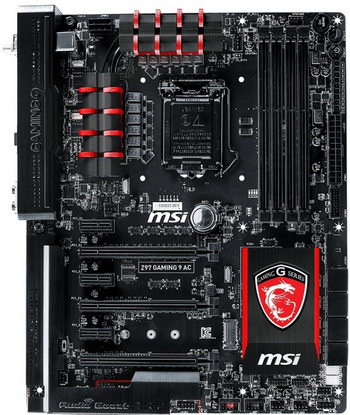 The high end mobo in the line is the model Z97 Gaming 9 AC. It is equipped with a connector LGA 1150, in which you can install processors Haswell, Haswell Refresh (including Devil's Canyon solutions with an unlocked multiplier), and in the future and Broadwell. processor power system provides 12-phase , power is supplied by the 8 - and 24-pin connector. Board has four DIMM slots for RAM type DDR3 (up to 2666 MHz).