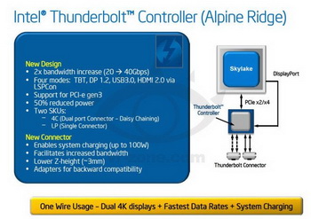 As follows from the publication, the new controllers will be released simultaneously with processors Intel Skylake. To communicate with the processor they use the bus PCI Express 3.0. Preparing two versions of controllers: Low power dual-port and single-port. The company also said to reduce consumption by 50% of controllers and protocol support DP 1.2, USB3.0 and HDMI 2.0 (4 Mode). We must understand, it is also possible mode support Thunderbolt Networking , when Thunderbolt interface becomes a channel for the transmission of Ethernet-network packets. Related Products :