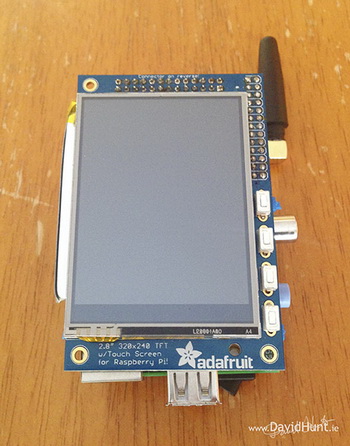 I must say, the device looks quite extravagant.  Directly to the Raspberry Pi  blue tape  nylon straps attached cellular module SIM900 GSM / GPRS, as well as other details like DC-DC converter, lithium-polymer battery capacity of 2500 mA · h and LCD touch screen with a resolution of PiTFT 320 x 240 pixels and a diagonal of 2.8 inches.
