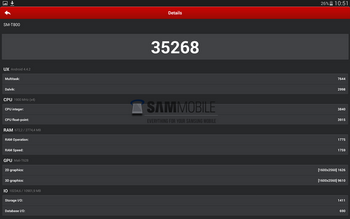 By the way, Samsung Galaxy Tab S already tested in AnTuTu benchmark and scored 35,268 points. Related Products :