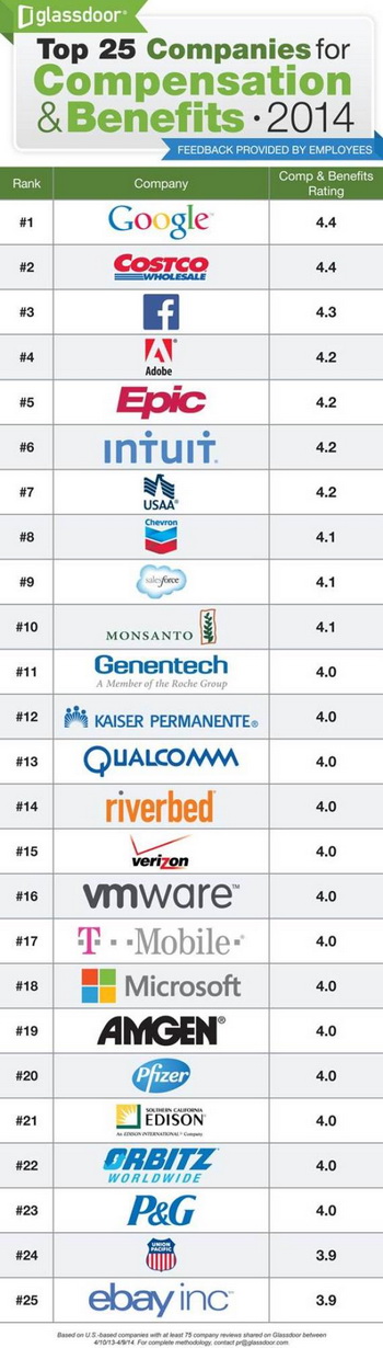 But despite the high salaries of developers, Apple was unable to get in the top 25 best companies offering their employees the highest salaries, bonuses and the best benefits and compensation.