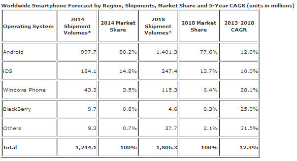 IDC RELEASED A FORECAST FOR THE DEVELOPMENT OF SMARTPHONE MARKET BY 2018