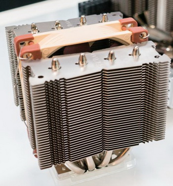 The first version uses a traditional CPU cooler tower layout with five U-shaped heatpipes, nominally, it is equipped with one 92-mm fan, but there is a possibility of installing a second.  Dimensions of cooler do not exceed 95 x 95 mm, which allows Noctua to talk about guarantees of compatibility with most format mini-ITX.