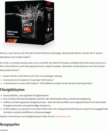 Originally processors FX-9590 and FX-9370 with TDP level not more than 220 W, AMD is trying to sell them only in the finished computers with installed liquid cooling system. Later processors began to appear in retail OEM-channels, and then appeared and boxed configuration without a cooling system, but with appropriate recommendations on the package. Finally, to consumers have been proposed the version with unsupervised liquid cooling system in the kit, which cost at $ 40-60 more expensive .
