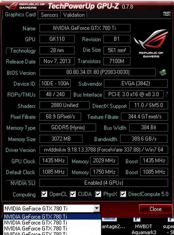 However, among all quad video card this is the third place, but in the category of GeForce GTX 780 Ti this is the highest result. The experiment proves again that summed computing resources for multiple graphics cards are sometimes more important than achieved using cryogenic cooling techniques for high frequencies.