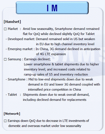 in Europe and the need to increase spending on advertising rose. In China, the Korean brand smartphones sold poorly because of customer orientation in the model to support LTE and price competition from local producers.