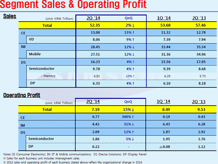Sales volumes in this direction in monetary terms decreased by 12% compared with the first quarter, and by 21.3% YoY. Operating profit compared with the previous quarter decreased by 31%, and it remains one of the major challenges looming before Samsung in the foreseeable future: to reduce price competition makes profits . Demand for smartphones, according to Samsung, in the second quarter decreased slightly (in monetary terms), but the costs due to the presence of large stocks of unsold products