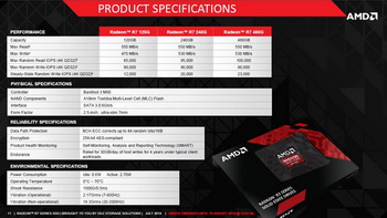 Drives will be presented under the trademark Radeon R7. Initially, AMD will offer three models of SSD capacity of 120, 240 and 480 GB, with the characteristics of storage devices can be found on materials from the presentation: