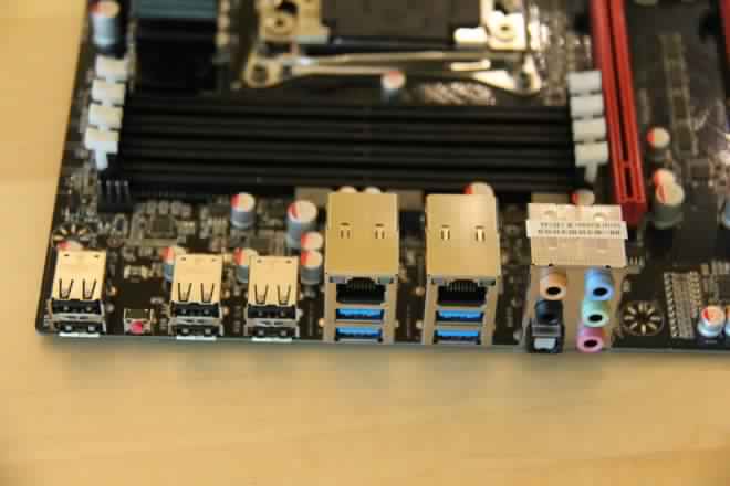 Model is equipped with audio system Creative Core3D, and on I / O panel has 6 ports USB 2.0, four-port USB 3.0, a pair of LAN ports and a set of audio.