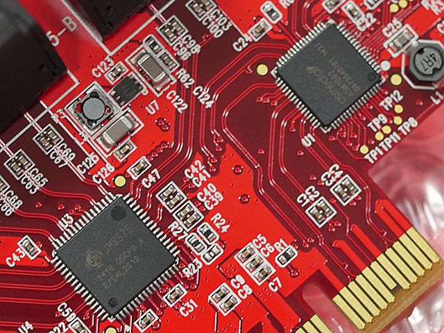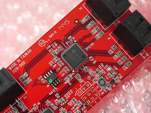 This device is cheap and has a compact board size of 140 x 55 mm and weighing 60 grams with the interface PCI-Express 2.0 x2, which is soldered one controller ASMedia ASM1062 controller and two-splitter JMicron JMB575.