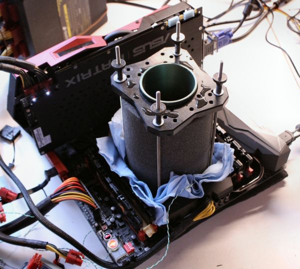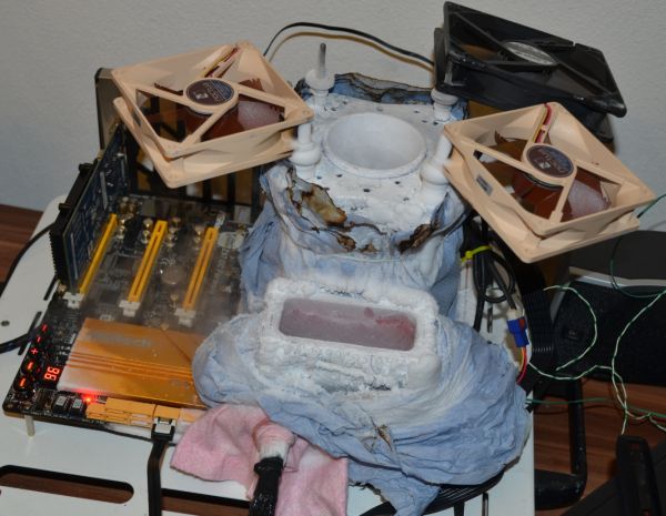The German enthusiast Der8auer used the new model CPU cooler named Fusion 3.1, ( soon to appear in retail ). He was able to set two record : 9750.9 points HWBot Prime and 2,361 points Cinebench R15.  Used processor Core i7-5960X, which under liquid nitrogen was overclocked to 6137 MHz and 5865 MHz, respectively.