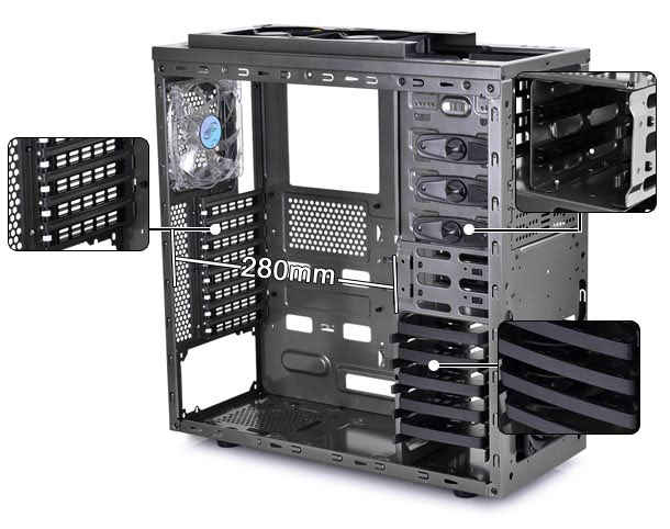 Internal space allows the installation of video cards no longer than 280 mm.