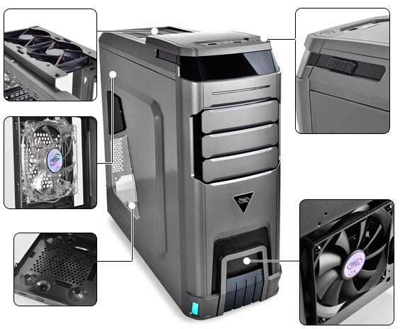 DeepCool Company prepare to sell case to build gaming PC - the model Landking. This class system Mid-Tower Motherboard form factor ATX and smaller. The exterior of the case - under the gray metal, though most of the details are made of ABS-plastic. Frame - steel. DeepCool Landking without accessories - 6.67 kg.
