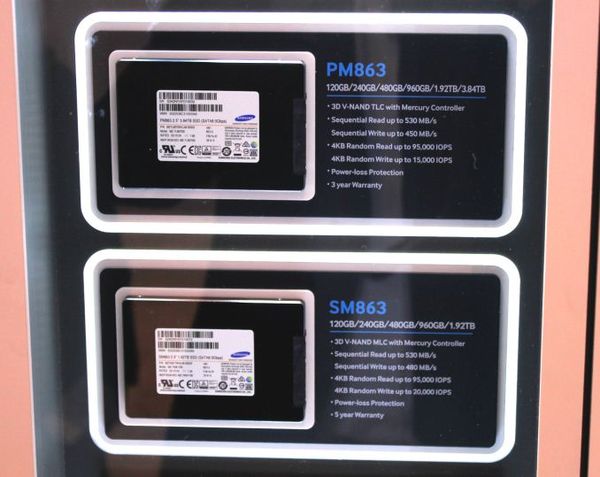 SM863 is a higher class: 32-layer 3D V-NAND, but with lower density MLC 86 Gbps.  Volumes are also modest: only up to 1.92 TB.  Speed characteristics are a little higher: 530 and 480 MB / s, 95000 and 20000 IOPS.  At the same time, and a longer five-year warranty.