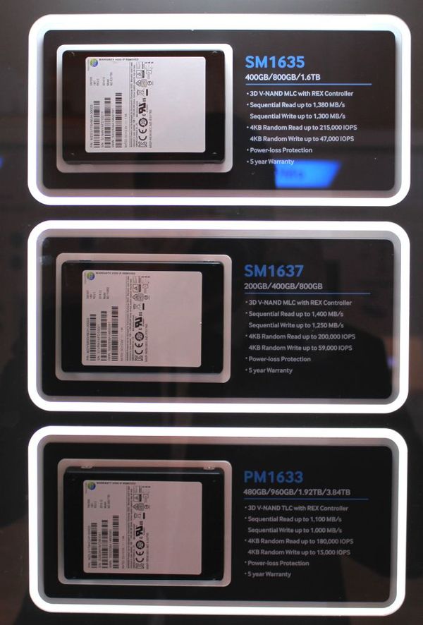 Three more SSDs - SM1635, SM1637 and PM1633 -  also used 3D V-NAND.  But the first two - MLC, and the third - TLC.  Heart of all three is the new controller Samsung, code-name REX.