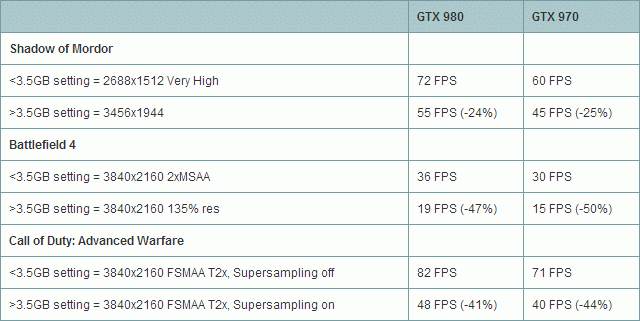 Associate explained that the particular arrangement of blocks on the GPU GeForce GTX 970 confer "first" 3.5 GB onboard memory a higher priority than the last 0.5 GB.  In fact, the GM204 option for GeForce GTX 970 truncated some hardware resources.  And while the application is running within the first 3.5 GB, changes in the level of performance is observed.  However, the source cites a number of examples where the reference to "low-priority" memory segment falls down.