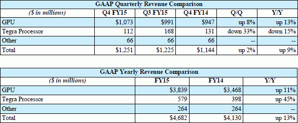 NVIDIA has released the results of the fourth quarter of fiscal year 2015, which ended for 25 January 2015 calendar year.  At the same time were given financial statements for the year, as well as a forecast for the first quarter of fiscal year 2016, which in the calendar of manufacturer has already begun.