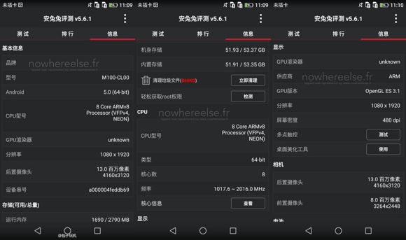In addition was published three screenshots AnTuTu, confirming specifications Huawei Ascend P8.  Based smartphone lay own 64-bit single-chip platform Kirin 930, which includes an eight mobile processor and Appendix 3 GB of RAM.  Other known specifications include 13-megapixel main and 8-megapixel front camera, as well as installed on board the Android 5.0 Lollipop.  Benchmark AnTuTu Huawei Ascend P8 scored 47,426 points.