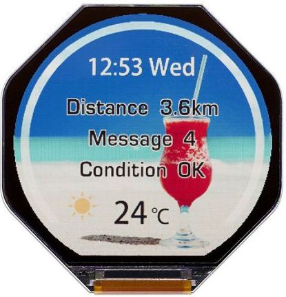 Display Size 1.34 "provides a pixel density of 238 units per inch with a resolution of 320 x 300 pixels. The circular bottom surface of the display is truncated along a chord, as the watch Moto 360. The entire display module has dimensions of 36.88 x 37.25 x 0.884 mm. Related Products :
