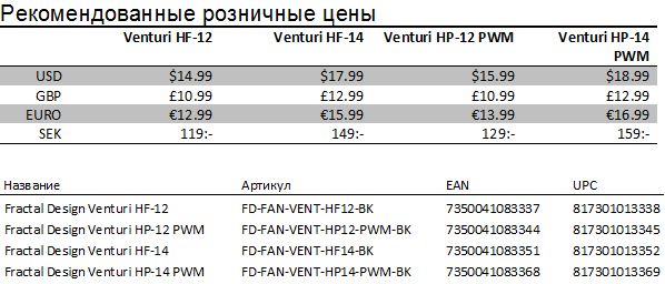 Swedish manufacturer Fractal Design has posted on its website a description of a new fans Venturi, which is characterized by a number of interesting engineering solutions and a wide range of possible applications.  The family is divided into two series fans: HF Series models with narrow blades and adapters to reduce the rated speed are combined with models of the series HP PWM, which are characterized by high productivity (High Performance) and PWM speed control.