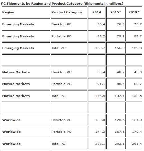 POSTER: computer news   ||   DOWNGRADED FORECAST PC SHIPMENTS IN 2015