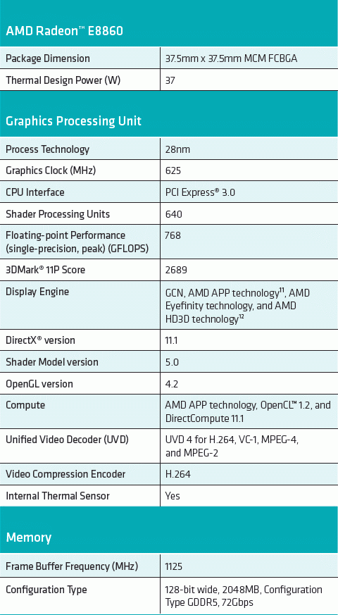 AMD in its annual report again mentions that Globalfoundries manufactures the bulk of the central and hybrid processors, as well as some variety of custom chipset and graphics processors.  What is meant by the latter, is not specified, but let's not jump to conclusions.  We should not forget that AMD produces graphics solutions not only for desktops and laptops, but also for embedded systems.  For example, the latest product of this class can be considered Radeon E8860, which comes on 28-nm technology, and the other two articles in the current range of embedded products are  satisfied with 40-nm process technology.
