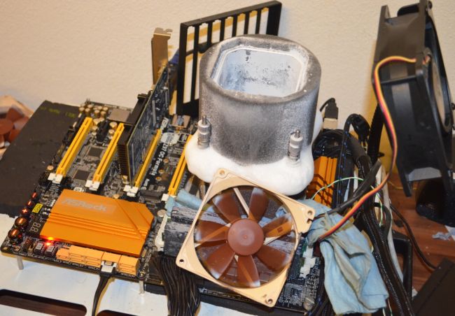 The processor was installed in motherboard ASRock Z97 OC Formula, it was cooled with liquid nitrogen using a tank Der8auer.