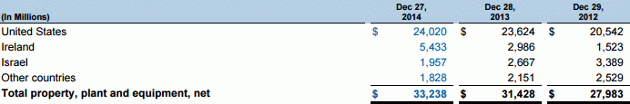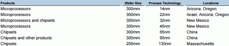About 70% of silicon wafers Intel processes in the United States, the remaining 30% comes from Israel and China.  Last year, the bulk of Intel processors produced from 300-mm wafers to 14-nm, 22-nm and 32-nm process technology.